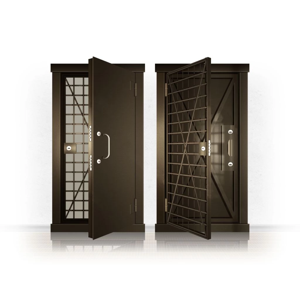 Металлические двери КХО и КХН представляют собой входные блоки, обладающие высоким уровнем взломостойкости и состоят из трех основных элементов: усиленного каркаса, сплошного металлического полотна и решетчатой двери. Дверной блок изготавливается из стального уголка 100*100 мм. Места крепления блока к стене цементируются и закрываются стальными наличниками шириной 40 мм. Крепеж заходит вглубь стены на 80 мм. В конструкции внешней створки монтируются ребра жесткости, для обшивки используется сталь толщиной не менее 3 мм. Внутренняя решетка изготавливается из прутка диаметром 16 мм. Размер ячеек решетки должен составлять не более 15 на 15 см. В точках пересечения прутья надежно приваривают друг к другу. В КХО и КХН необходимо поддерживать определенную температуру и влажность. Для этого внутреннее пространство глухой двери заполняется теплоизоляционным материалом, а по периметру двери приклеивается уплотнитель. Такие двери оборудуются замками с повышенным уровнем взломостойкости. Специализированные двери КХО и КХН в Белом могут быть оснащены сигнализацией, в конструкции могут быть проушины для навесного замка и элементами для опечатывания. Если идет речь о двери в комнату хранения оружия, в створке оборудуется окно для выдачи оружия и спец. средств, которое накрывается стальной дверцей.
